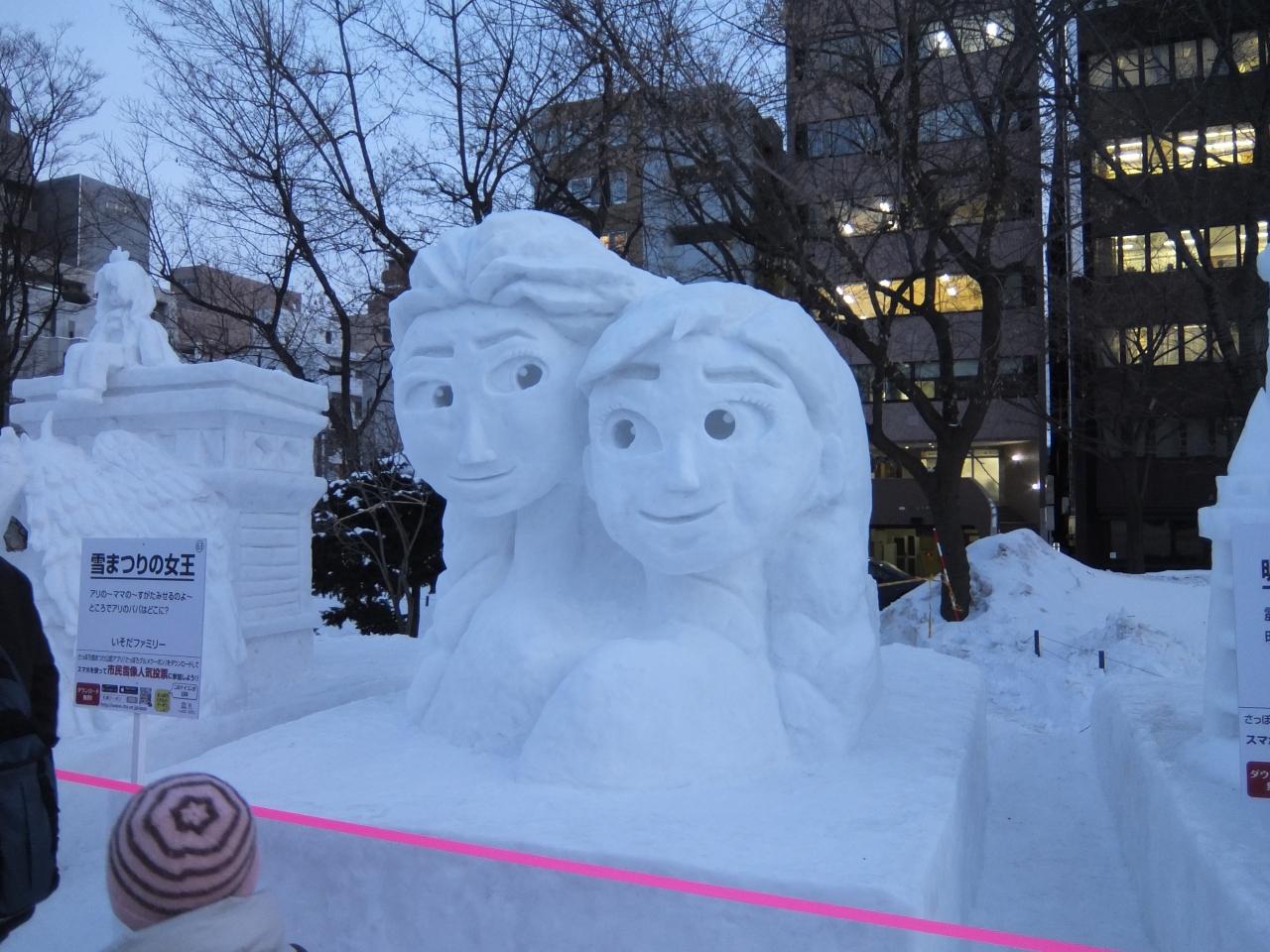 いろんな雪像あります。アナ雪とか。