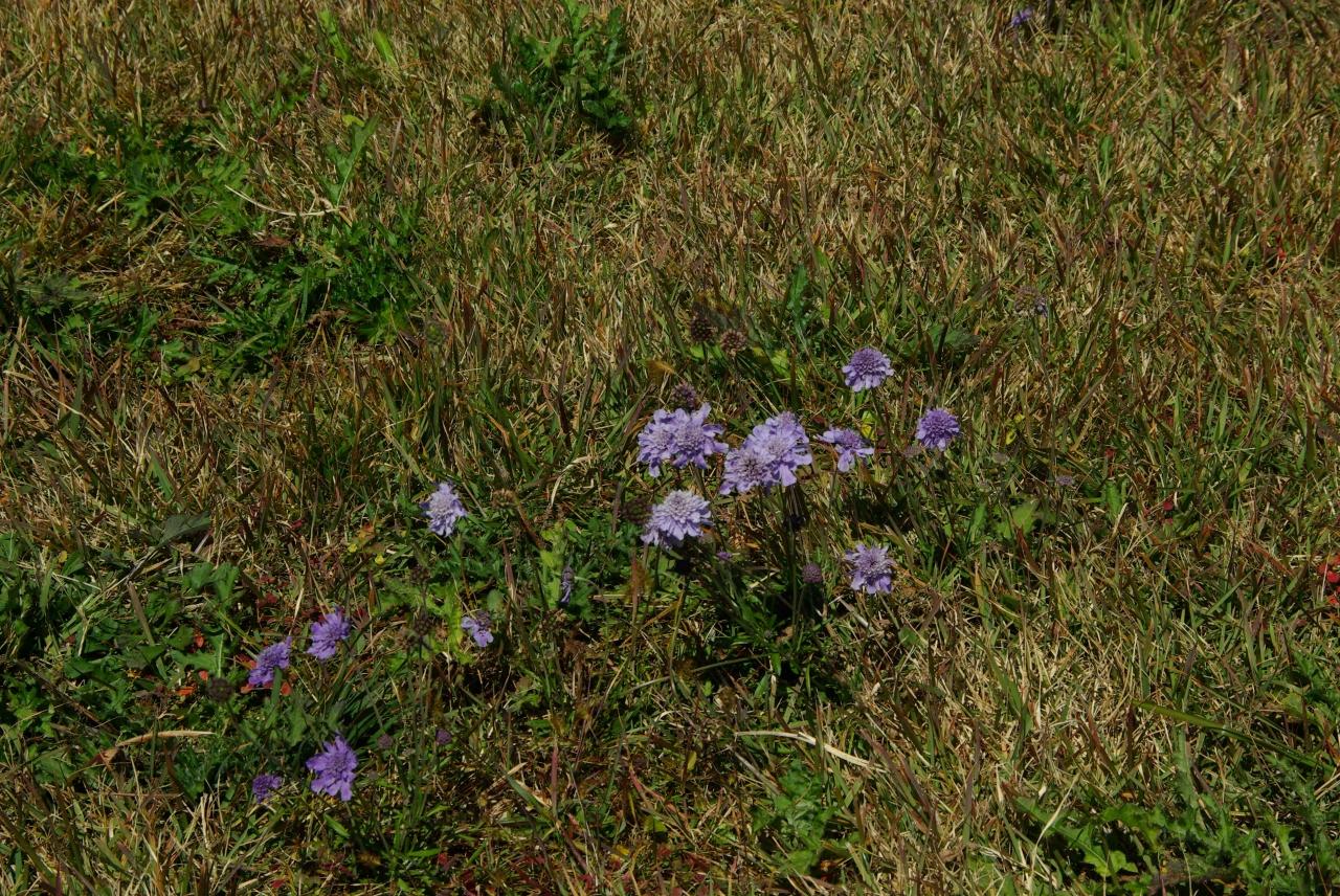 芝生の草原には、マツムシソウ、リンドウ、ウメバチソウ等が