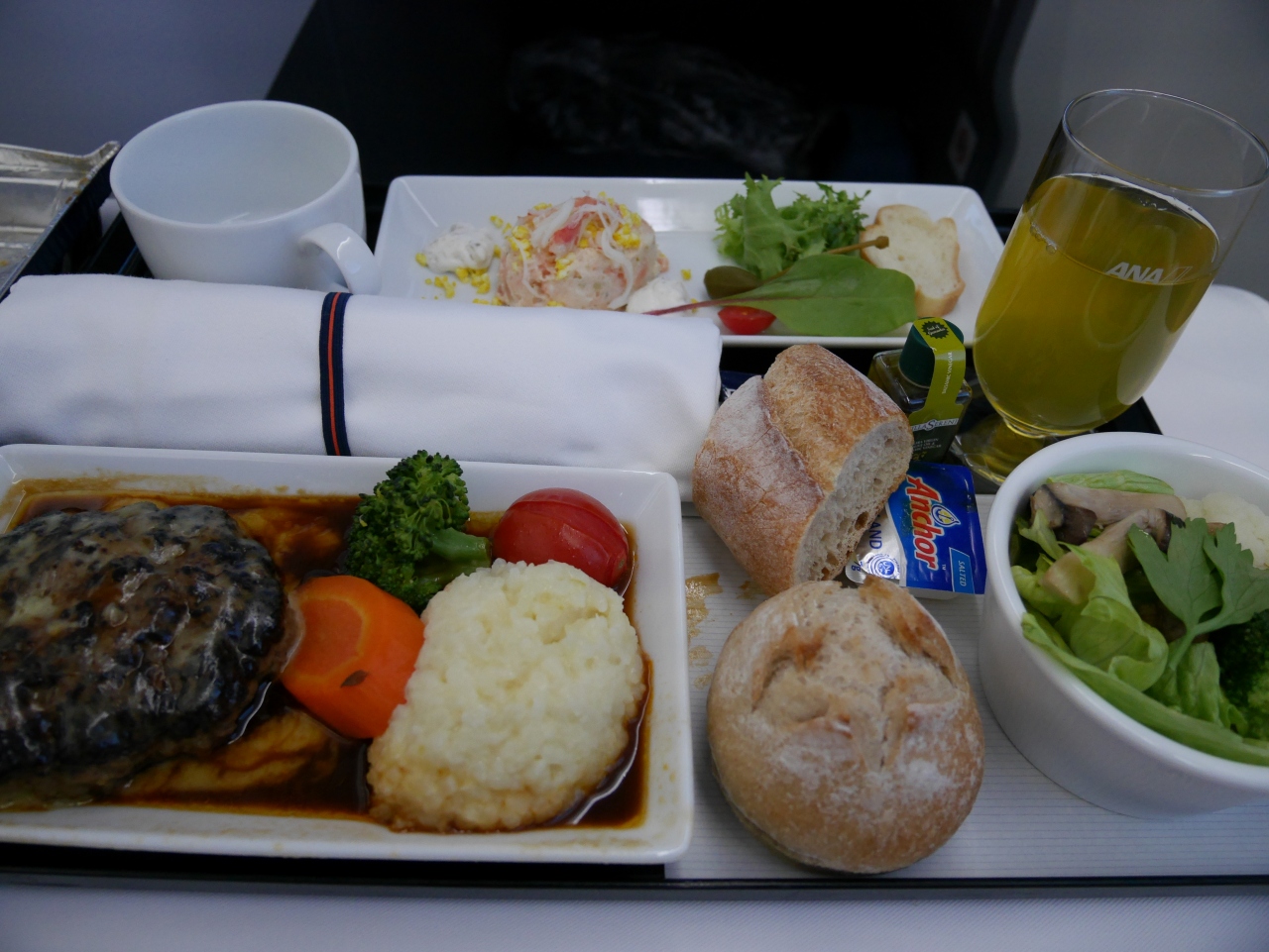 離陸の前に、おしぼりとスパークリングワインをいただきました。