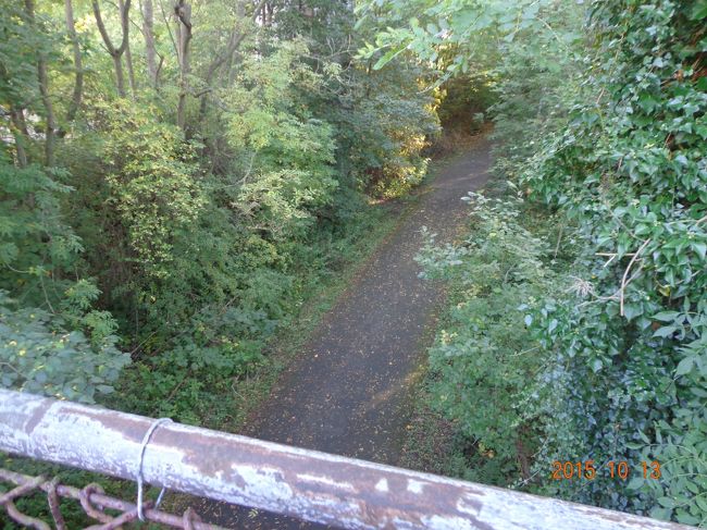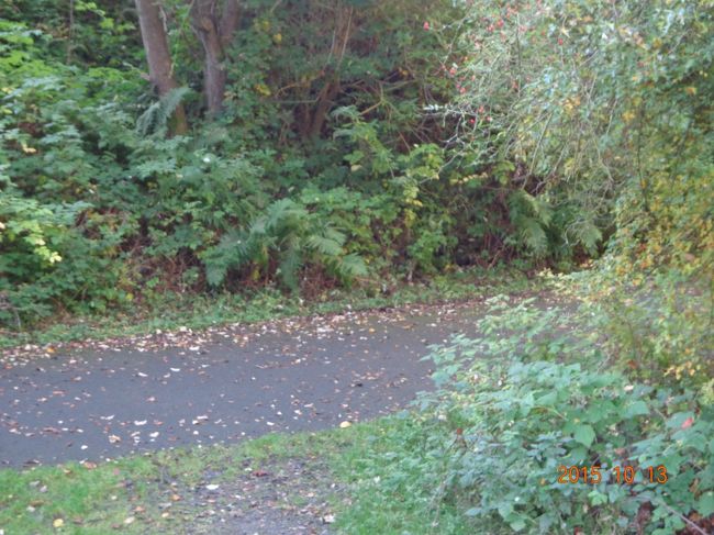 フォース鉄道橋の下に降りるには,このけもの道に毛が生えたような小路をひたすら下っていきます(バスターミナルの所に案内の→が出ています)。