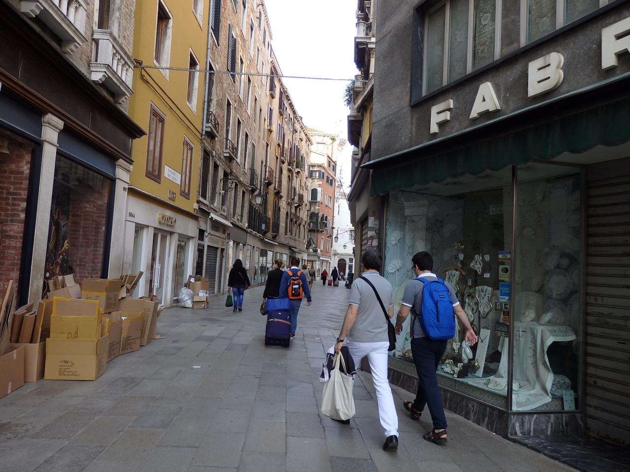 最寄駅のサンスタエ からリアルトをウォーターバスで移動。そこから陸(?)を横切ってサンマルコ広場まで歩きます。迷いますが、それも楽しい。