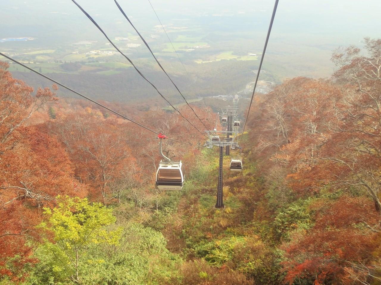 下りでは進行方向に一面の那須高原が広がって見えるので、上りのときよりも広範囲の紅葉を楽しむことができます。