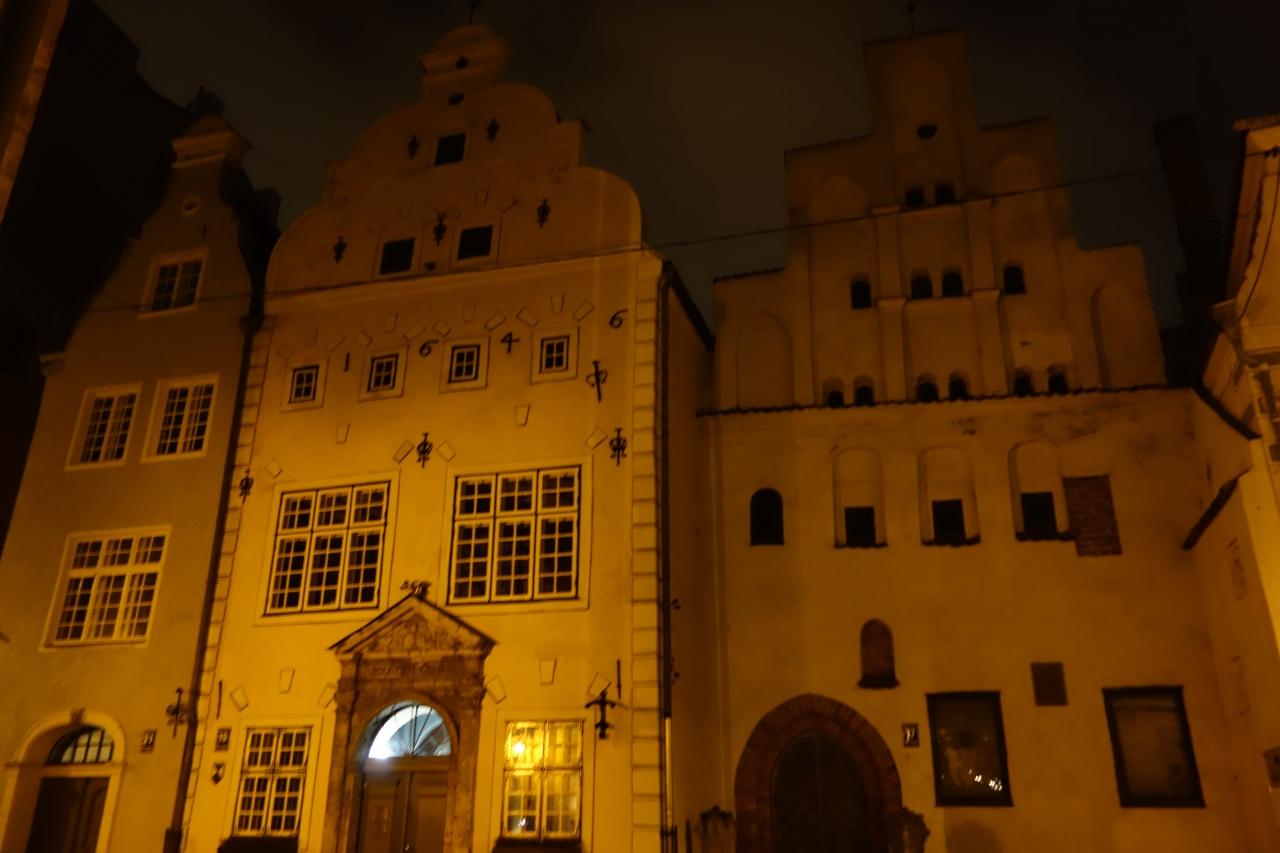 ブラックヘッド会館だけライトアップされていて、はっきり写りました。並んでいるのに隣の建物は何度撮っても真っ暗なままでした。