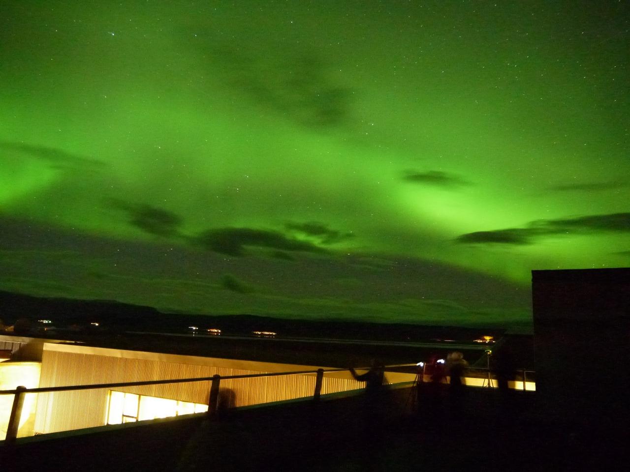 「でたぞ〜オーロラでたぞ〜」と添乗員さんの絶叫する声で上の階へあがってみると・・・ -