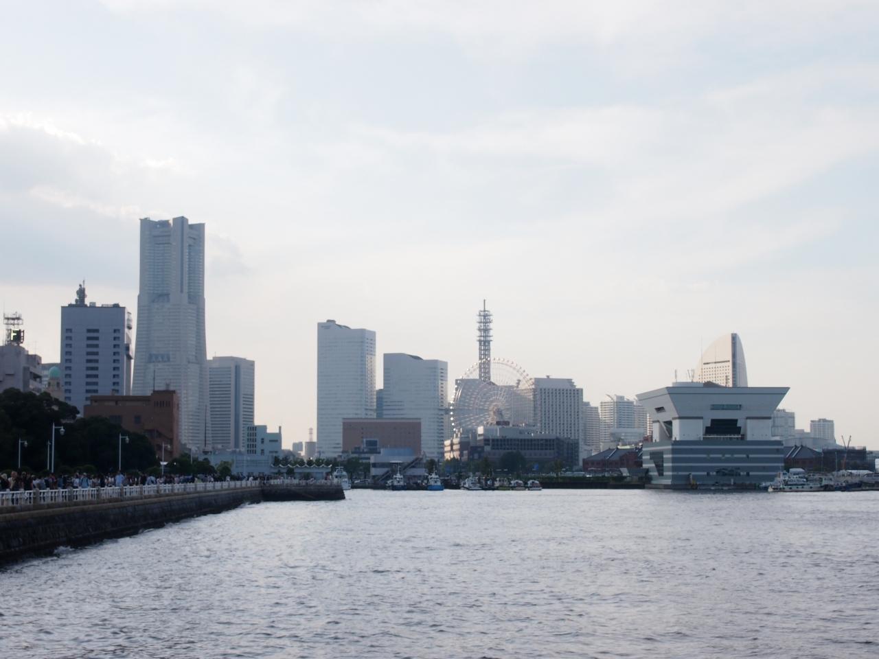 氷川丸と反対の方を見るとみなとみらいなどが見えます