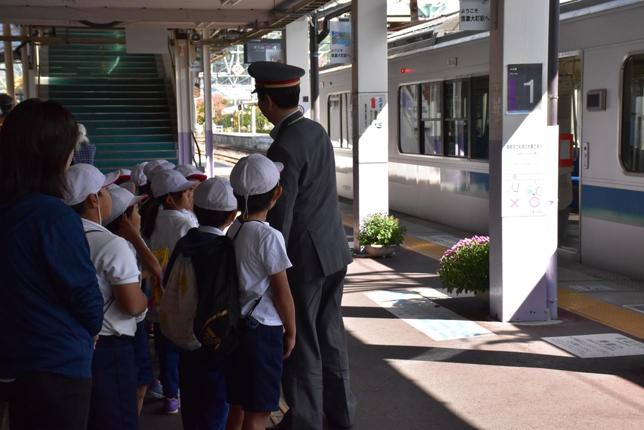 今日は平日なので、小学生が駅の社会見学に来ています。 -