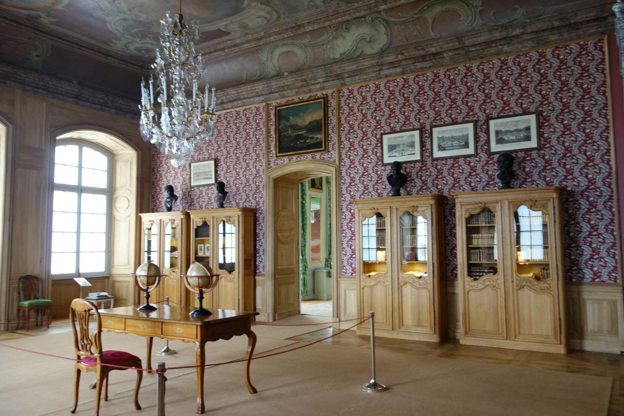 ヴェルサイユ宮殿のような豪華絢爛といった感じではありませんが、部屋ごとに壁やカーテンやイスなど同色で統一されていて一部屋ずつ興味深く見学できました。楕円形の磁器の間は台は波をイメージして全体を滝をイメージしていて、とても惹かれるものを感じます。