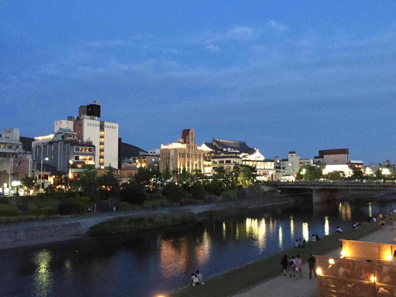 鴨川の美しい夕景の変化を楽しみながらの楽しく美味しいひと時でした。