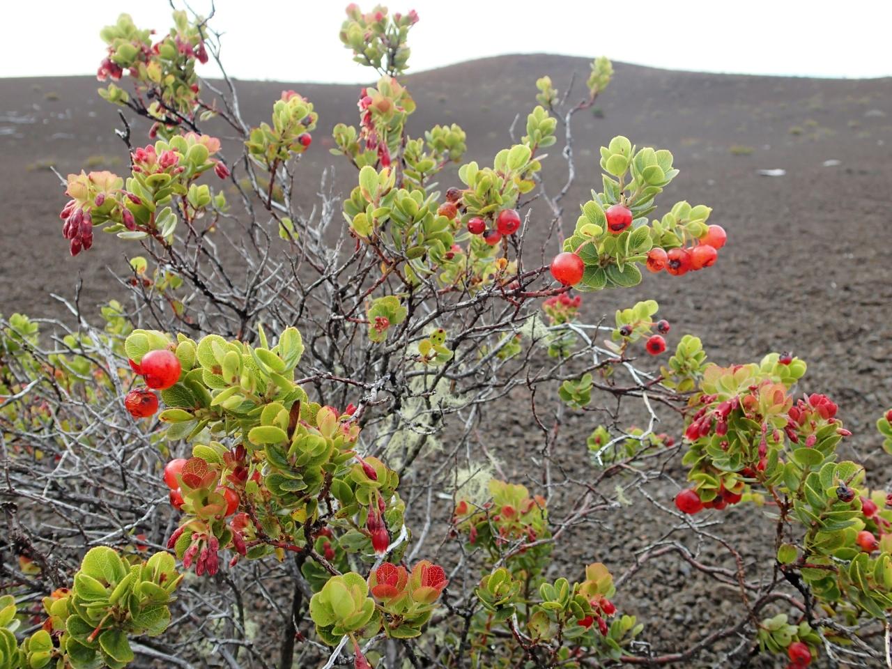 赤くかわいいオヘロベリーの実は、女神ペレへの捧げ物です。