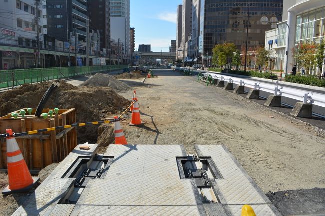現在、阪堺電車の線路つけかえ工事をしています。