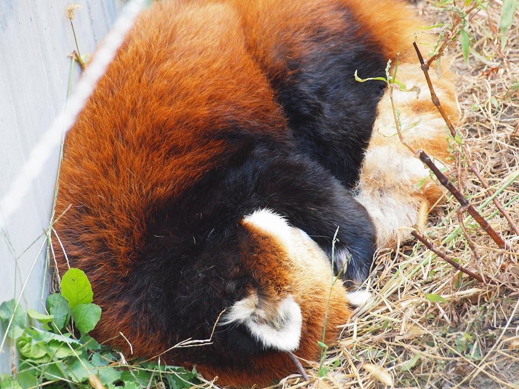 動物園にいるレッサーパンダ4頭ともくるんっと丸くなってお昼寝していました。