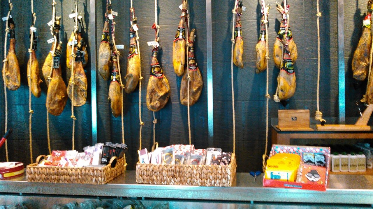 ドライブインでトイレ休憩。ここでもイベリコ豚がぶら下がっています。丸ごと買う人がいるのでしょうか?