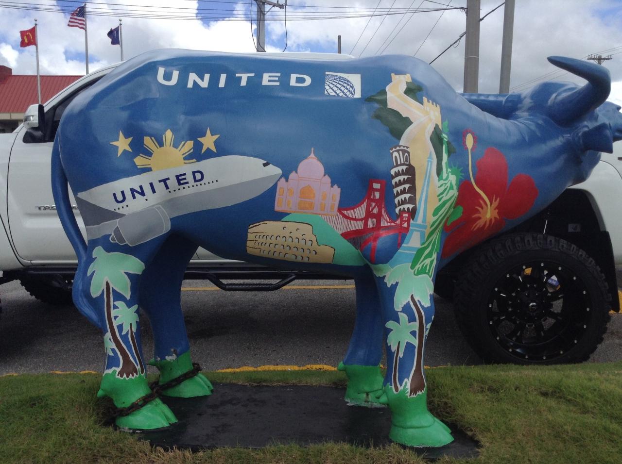 ユナイテッド航空の店舗前にあった宣伝牛?!(笑)カワイイ!