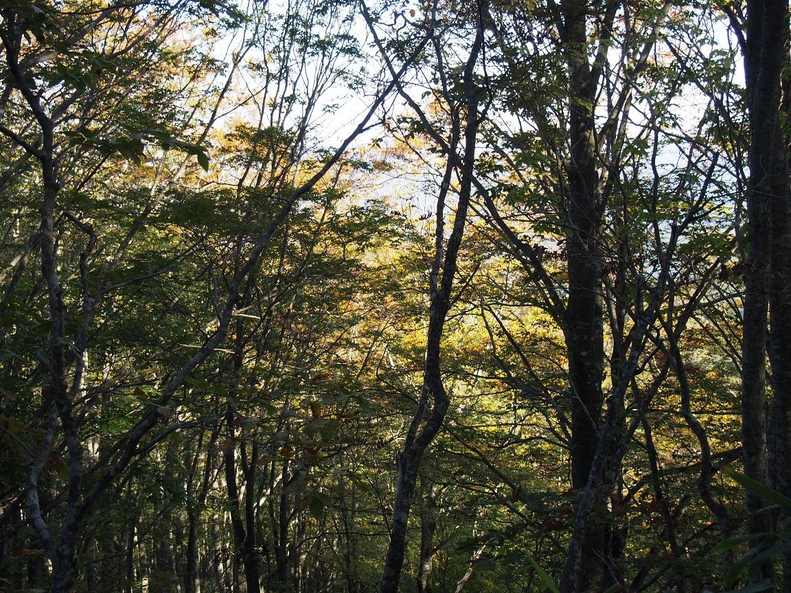 初めのうちは緩やかな登りのブナ林の中を歩きます。わずかに色付いています。