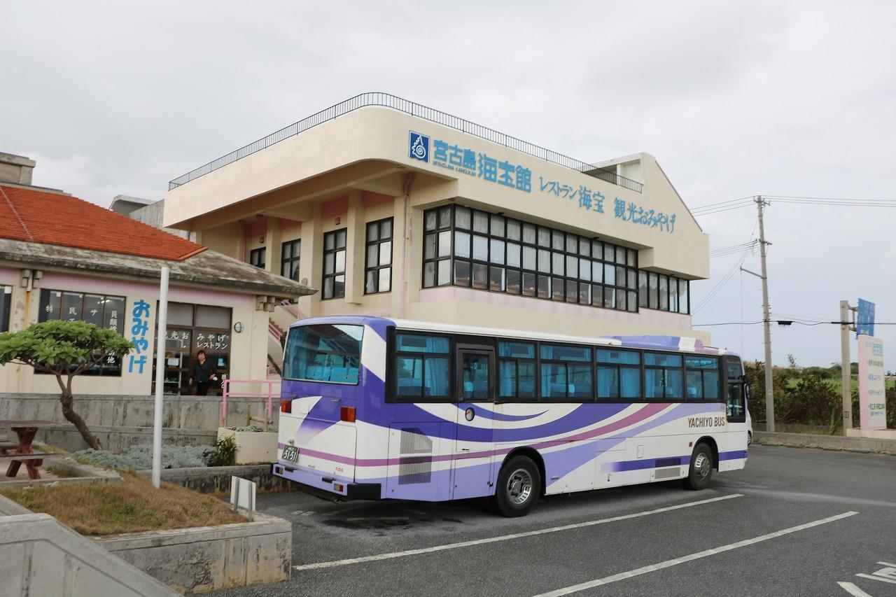 この海宝館の駐車場から東平安名崎を望むことができます。