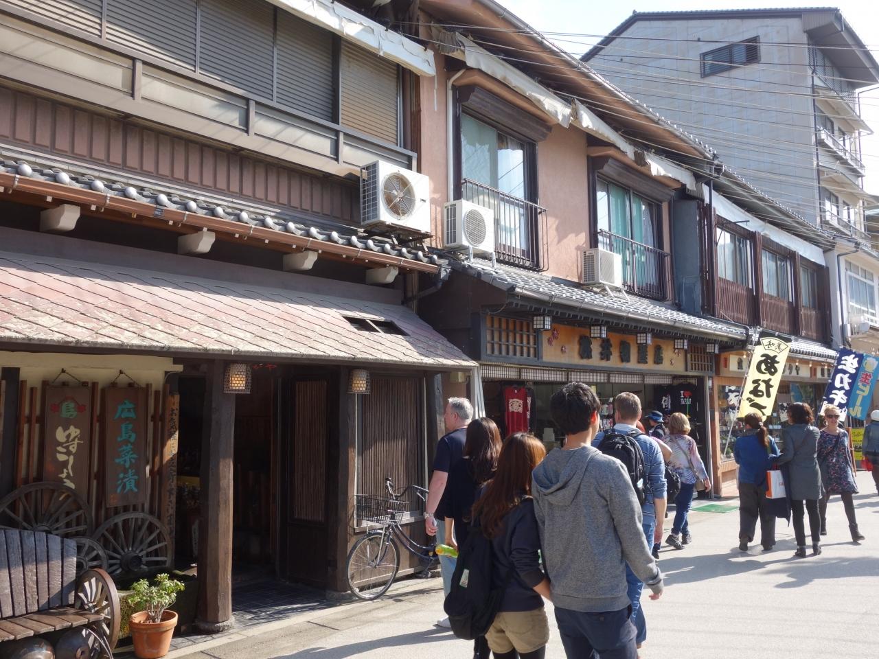 宮島は清盛通りがメインストリート。みやげ物店にレストラン。外国人もたくさん歩いていました。とってもにぎやかで驚きました。
