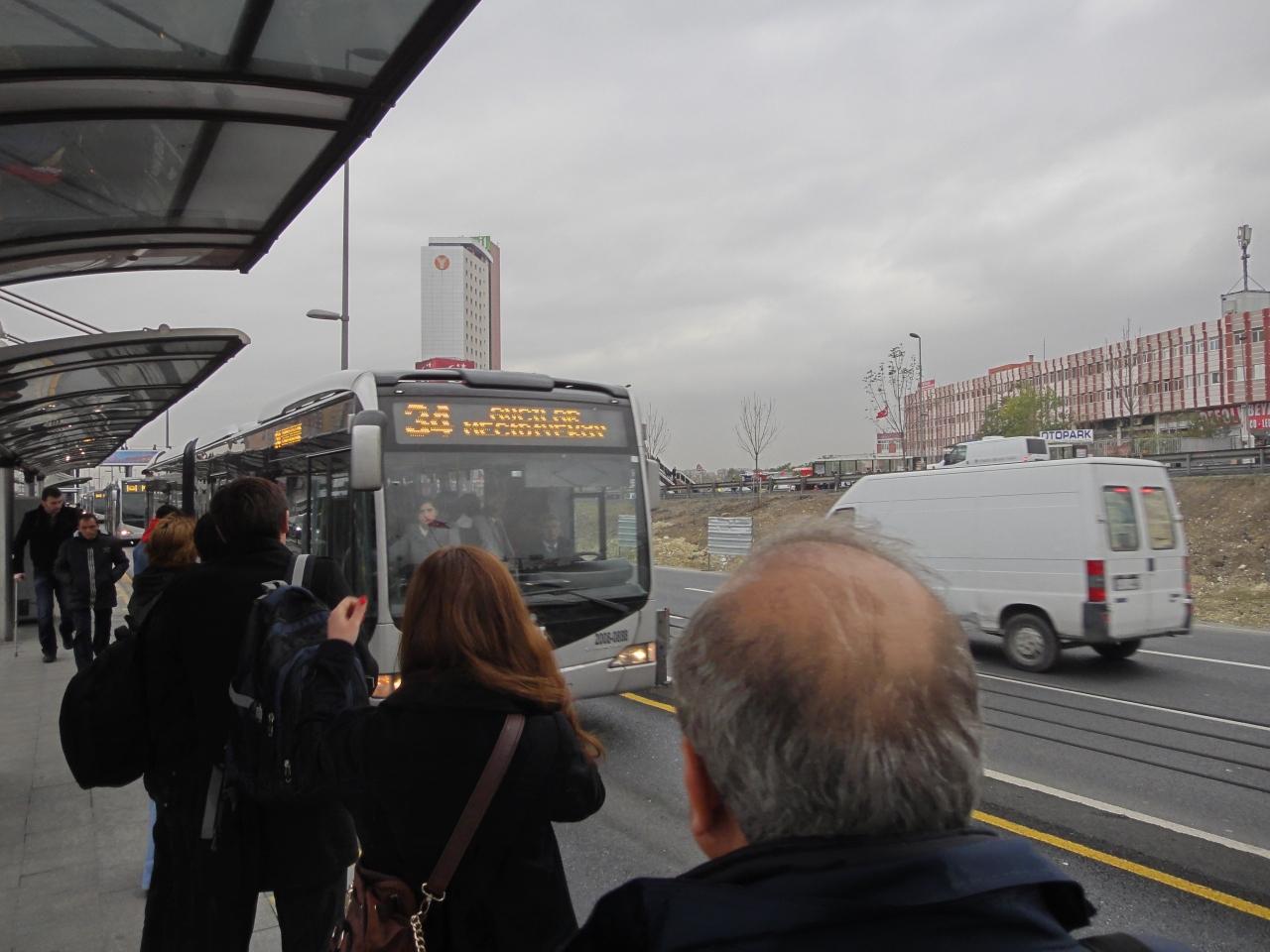 環状道路とバルバロス通りのインターチェンジ下にあるバスターミナルで乗り換えとなる