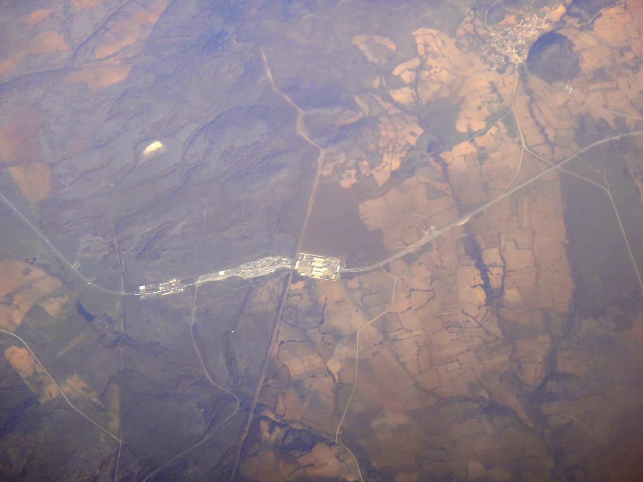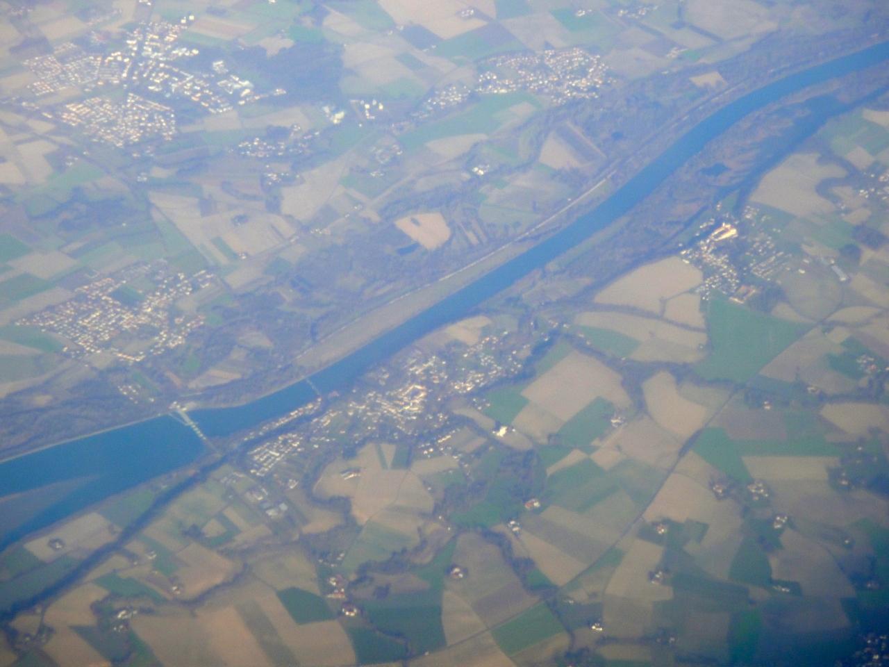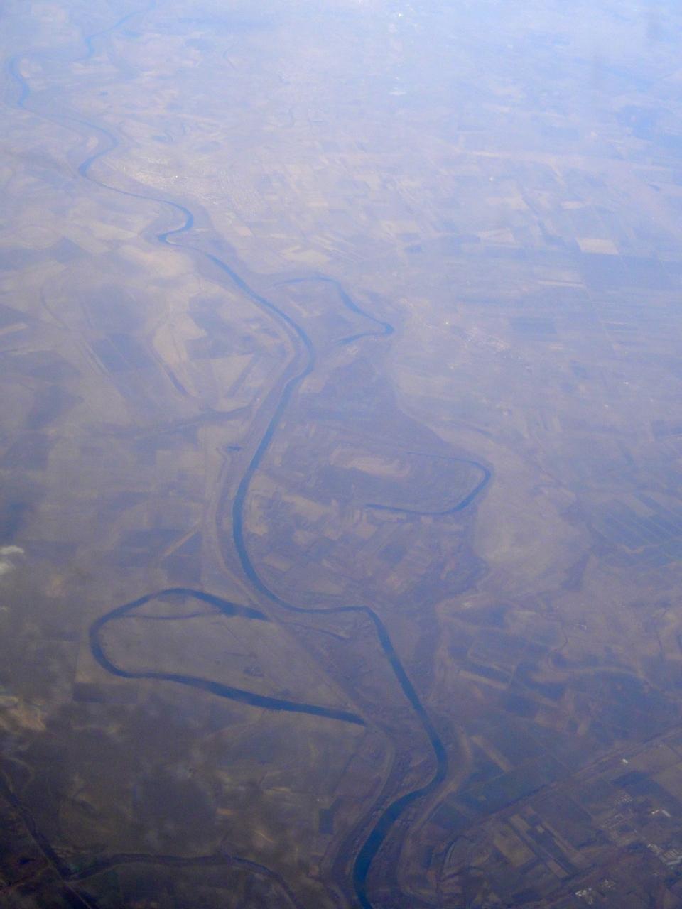 ハンガリーのセゲド上空 平原地帯を蛇行する川に三日月湖