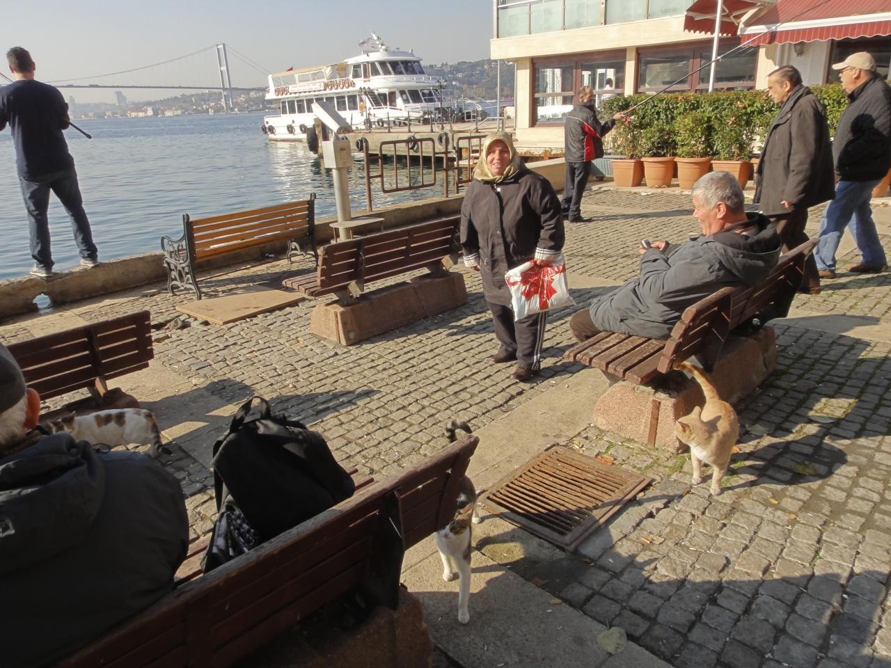 釣り人が多数 そして何をするでも無くベンチにたたずむ人々と猫達で賑わう