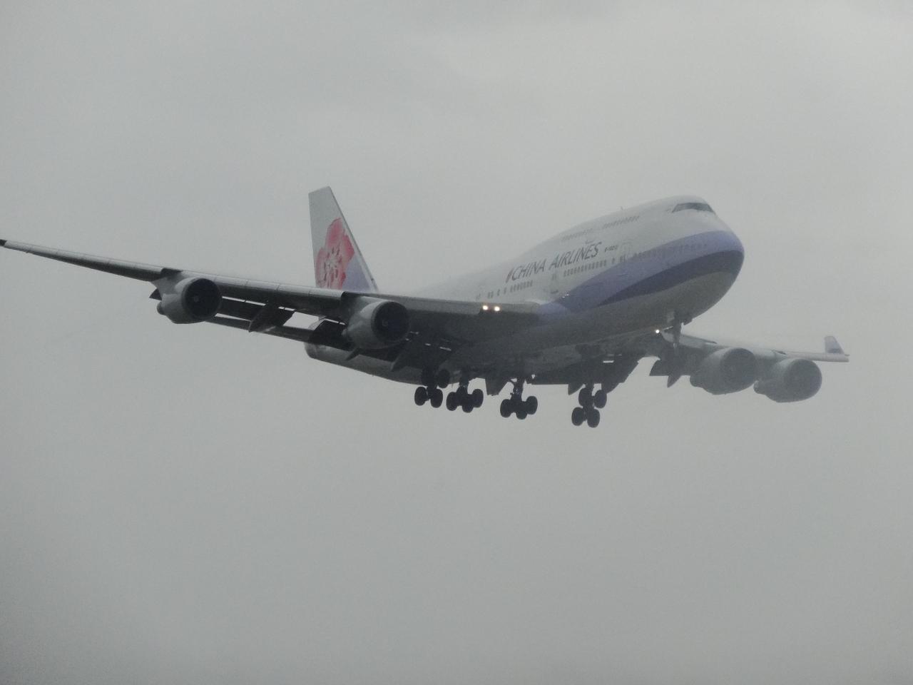 チャイナエアーの747-400が、着陸するのを待っていたようです。