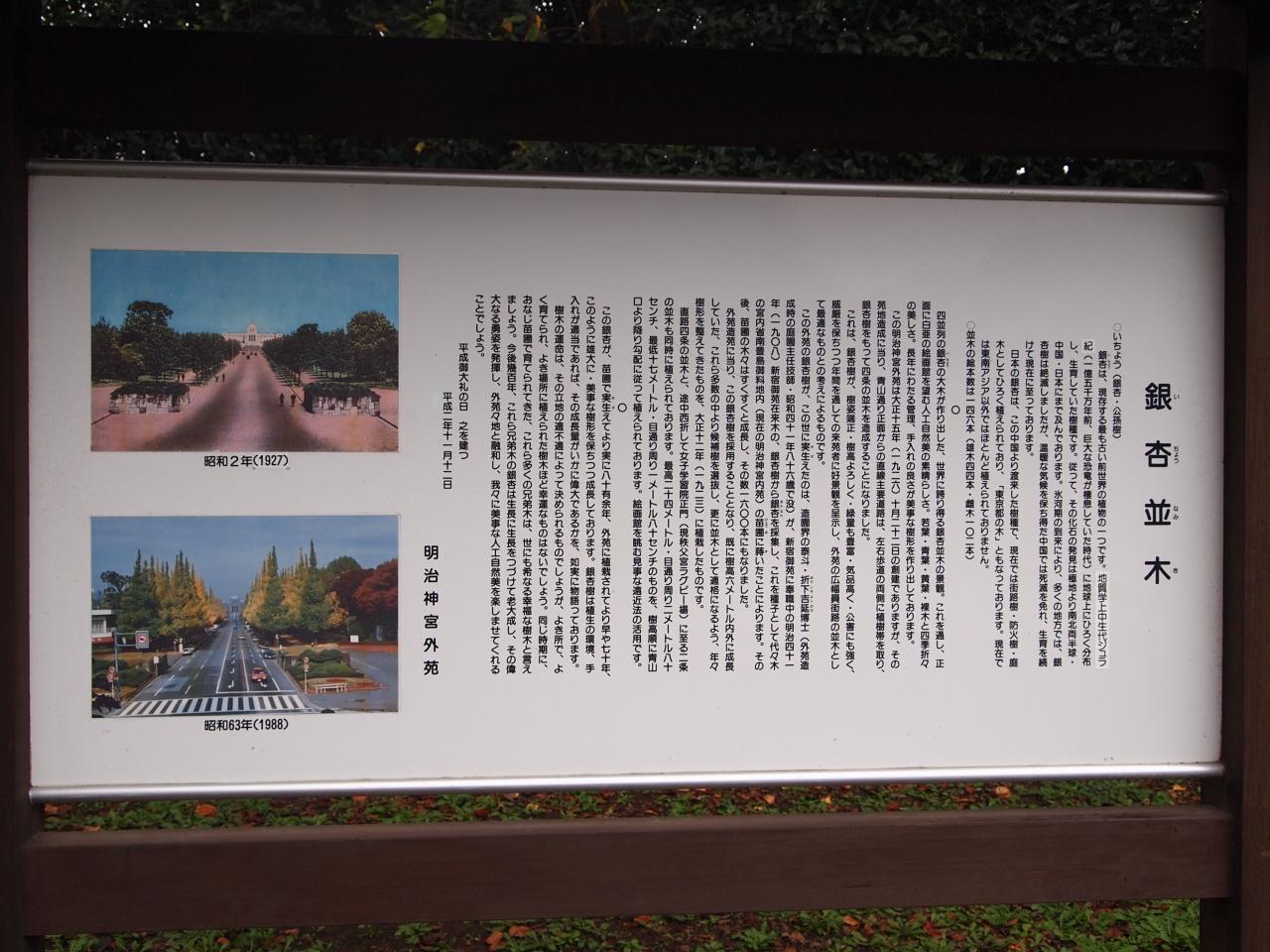 銀杏並木の歴史を記した看板もあります(フムフム)