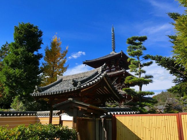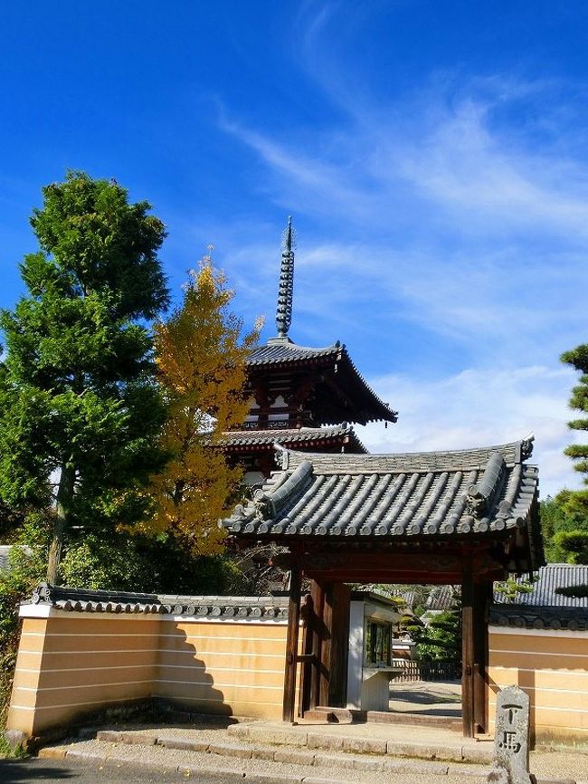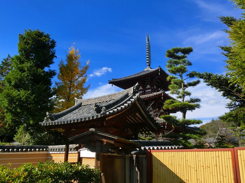 聖徳太子の病気平癒を願い、子の山背大兄王(やましろおおえのおう)によって建立されたと伝えられています。聖徳太子が飛鳥より三つの井戸を移したことから、三井(みい)という地名になり、三井寺(みいでら)とも呼ばれています。三重塔は、法隆寺、法起寺の塔とともに斑鳩三塔と親しまれてきましたが、昭和19年(1944)の落雷によって焼失し、昭和50年(1975)、当初の様式と工法によって再建されました。