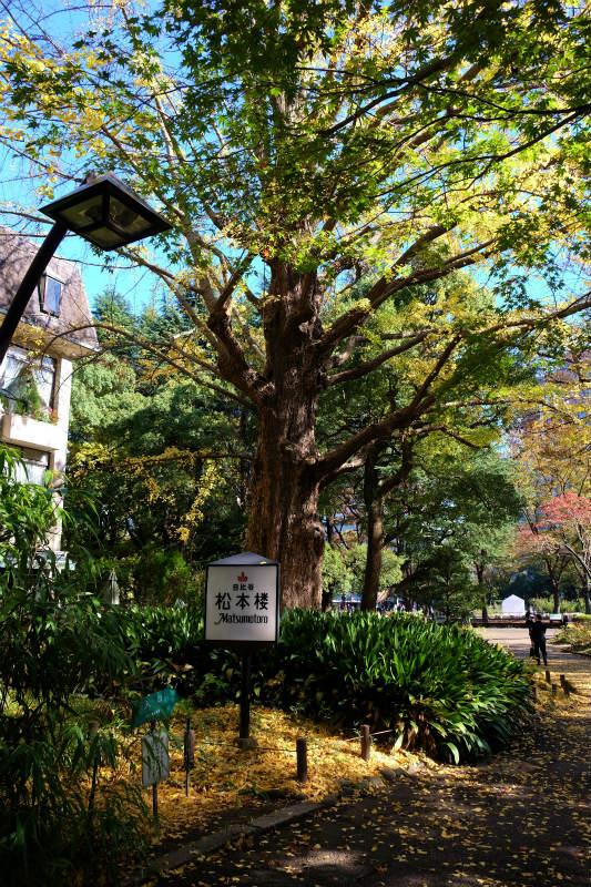松本楼の首賭け銀杏の元気な姿を写し