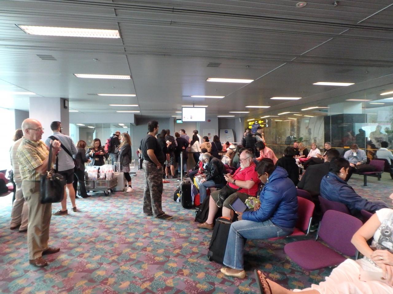 SQのカウンターに日本人スタッフがいたので聞いたら「火山の噴火が原因です」とのこと。