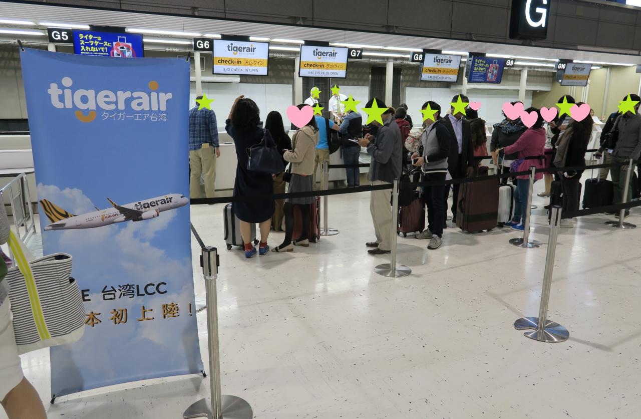 タイガーエア台湾はGカウンターということでイミグレ側の建屋に沿うカウンターでした。