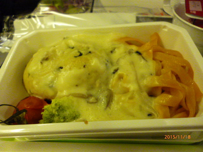 事前に、機内食のチェックをしたら、食べれない素材だった為、予めネットからベジタリアンミールをオーダー 思ったよりおいしく頂きました