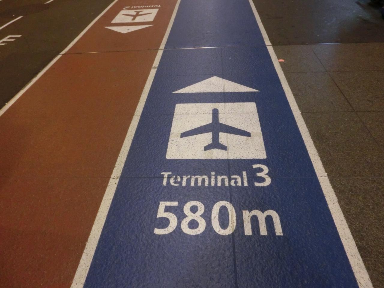 第3ターミナルまでの道は、空港にまつわる小咄のパネルや、給水・休憩ポイントがあったり。トラックをたどると脳内マラソンランナー気分で、ターミナルビルに着いたときは、栄光の国立競技場へ戻ってきたかのようだった^ ^ゴール! -