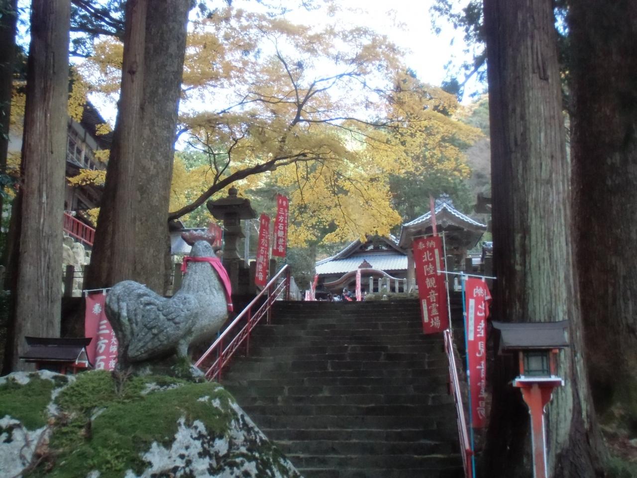 弘法大師が若狭に布教の際、花崗岩に一夜で彫ろうとしたが、完成する前に一番鶏が鳴いた為、