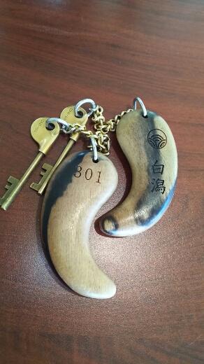 鍵は、勾玉のキーホルダーがついています。