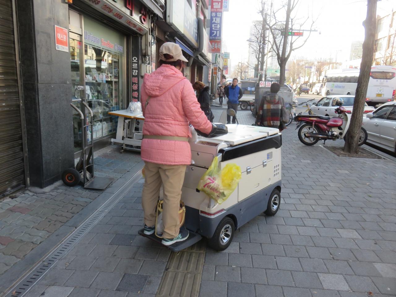 後ろから見ると、ちょっと大型のセグウェイに見えなくもない。「ちょっとこの乗り物、乗ってみたいな〜」と思いながら見送ります。