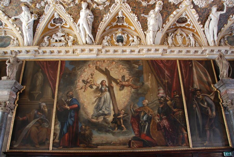 内部で特に有名なのがルネッサンス期のヴェネツィア派を代表する画家ティントレットが描いた「天国(Paradiso)」で、7×22メートルその作品は世界最大の油絵とも言われており、2階の大評議の間にあります。 -