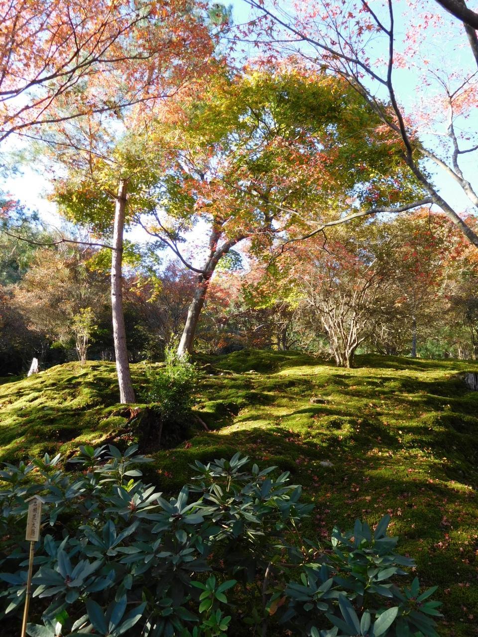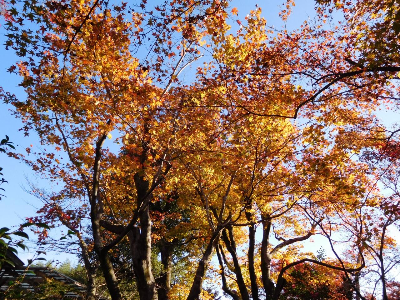 こちらに見える紅葉は曹源池の後ろ側にある木々です。 -