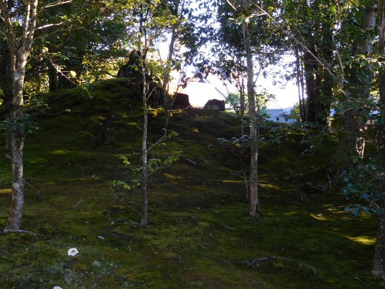 木々の間から曹源池と方丈の屋根が見えました。
