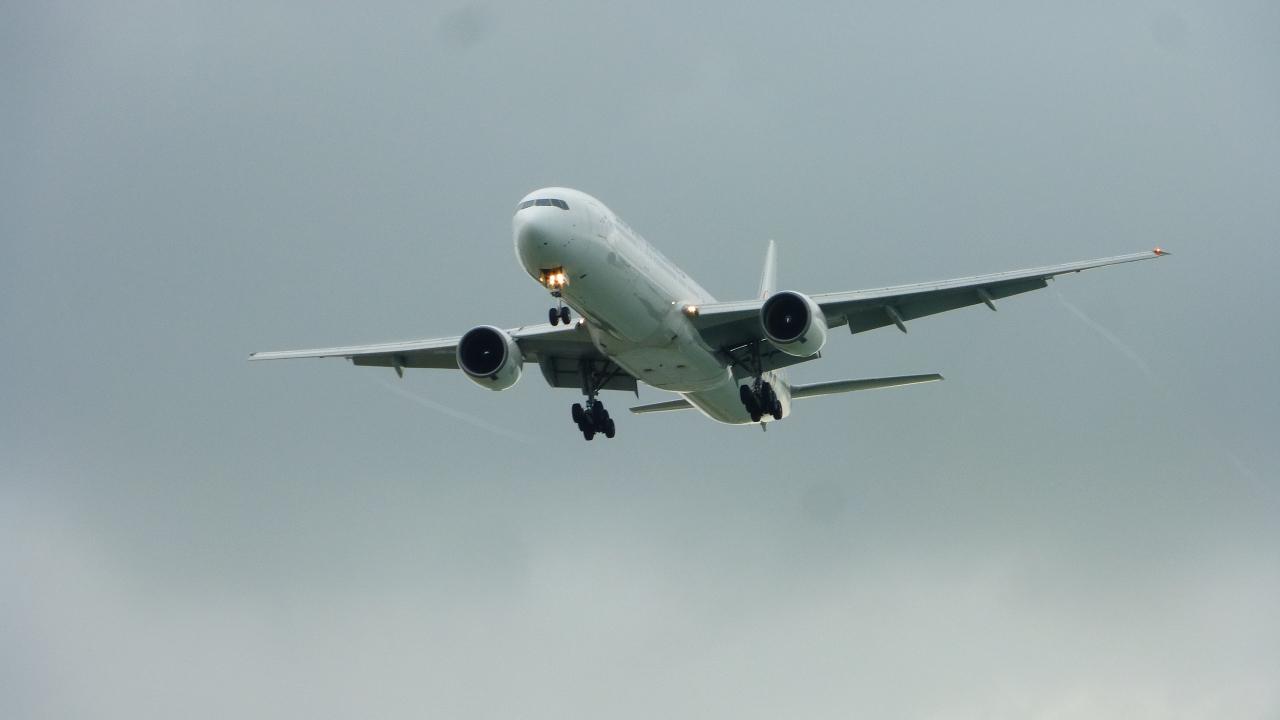 着陸機が真上を通過して行きます。