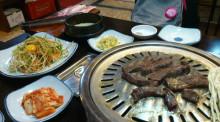 鳳順(ポンスニ)というお店でサムギョプサル。(これは牛肉だけど)