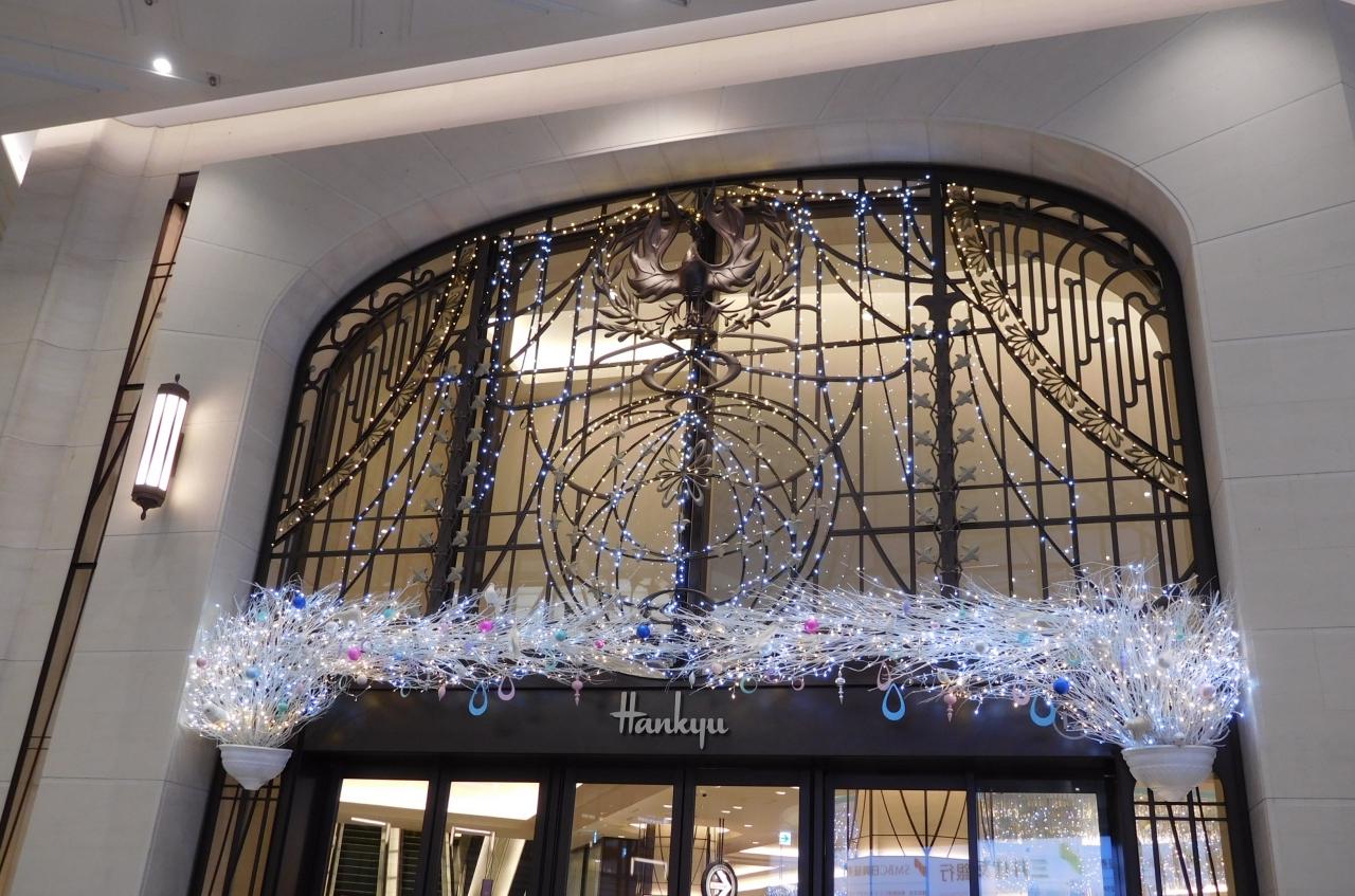 阪急百貨店の前にはクリスマスの飾りがされています。