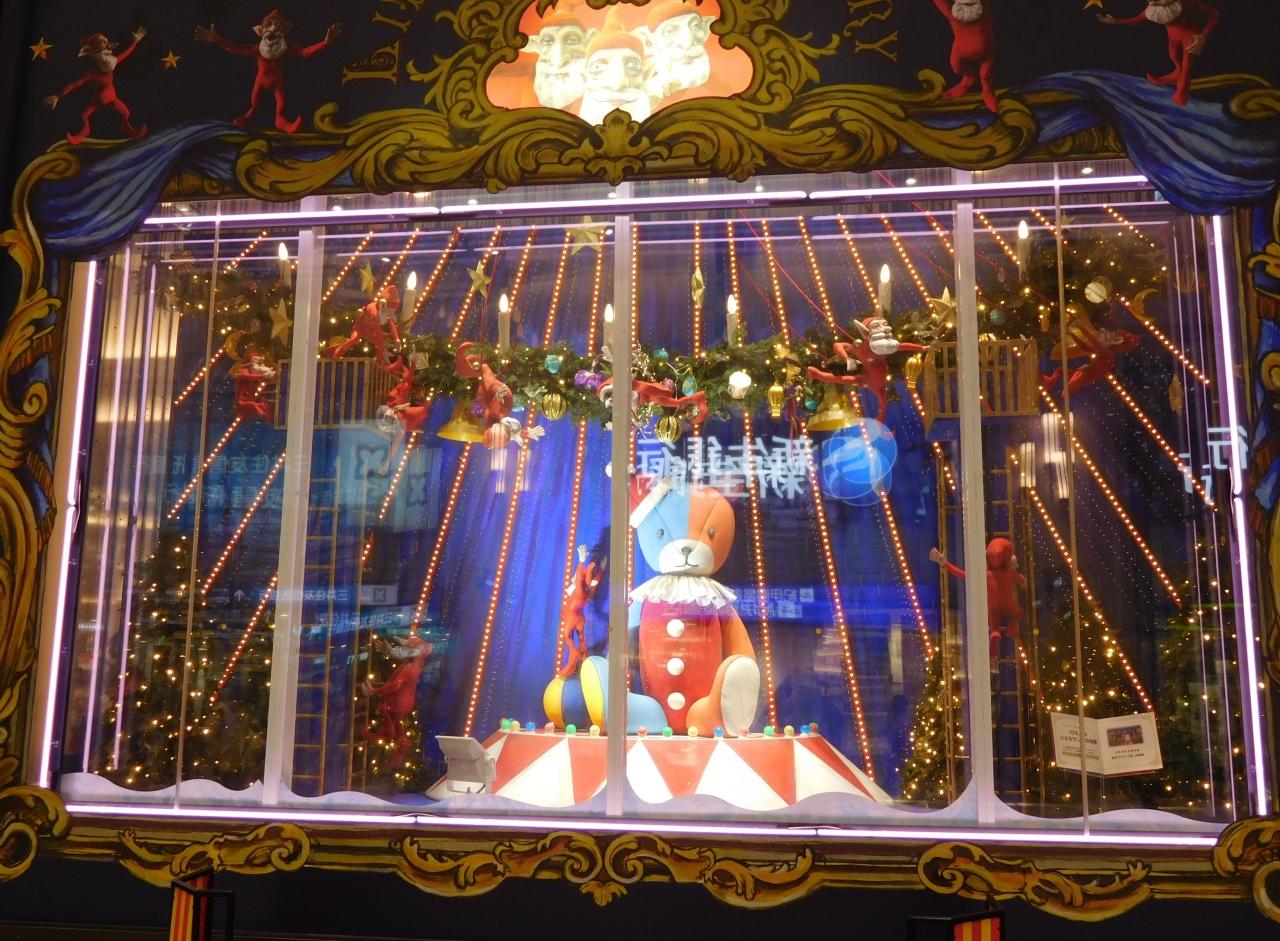 ショーウィンドウにはクリスマスの飾りつけがしてあります。