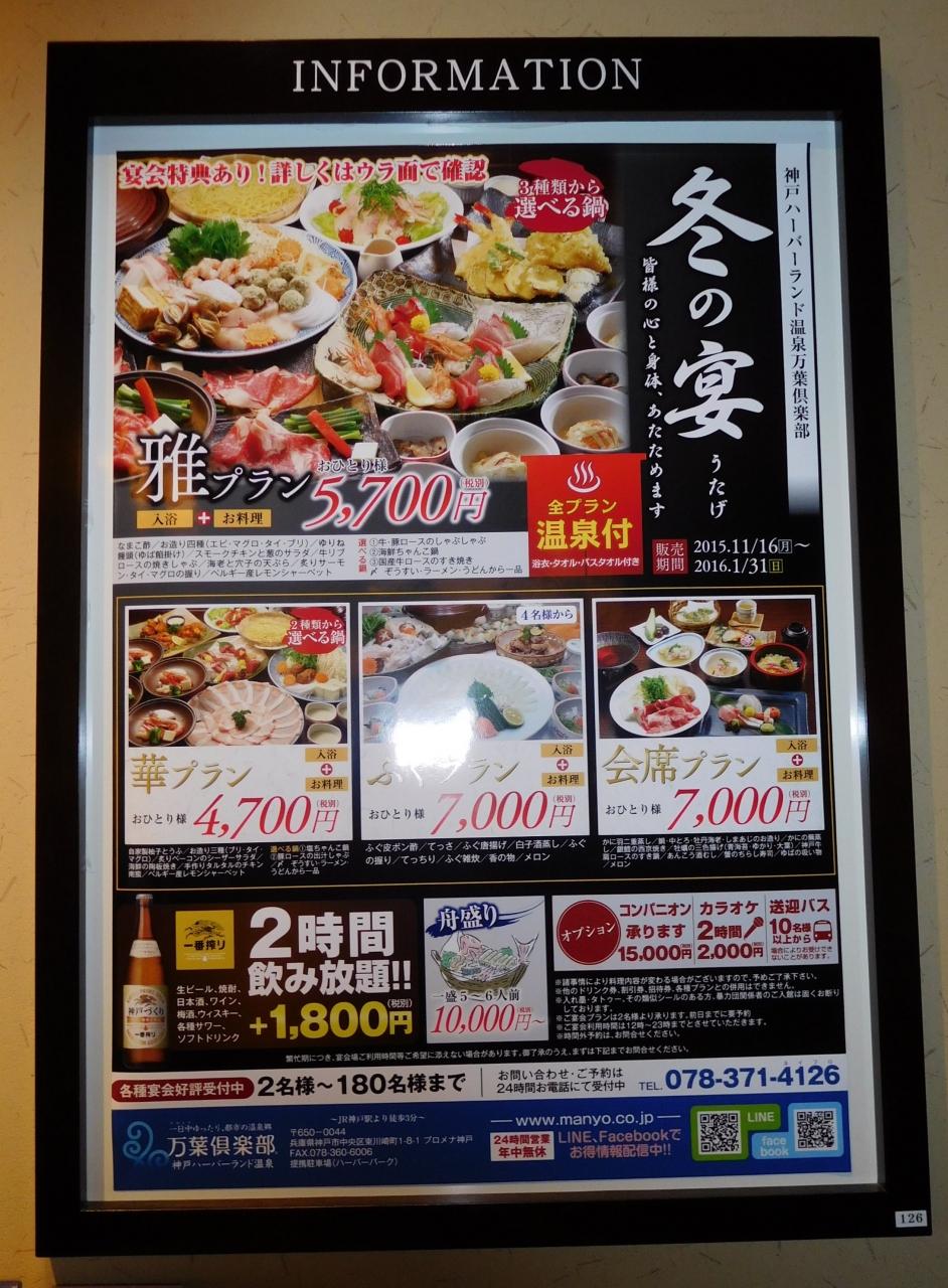 クラス会でハーバーランドにある「万葉倶楽部 ハーバーランド温泉」に宿泊しました。