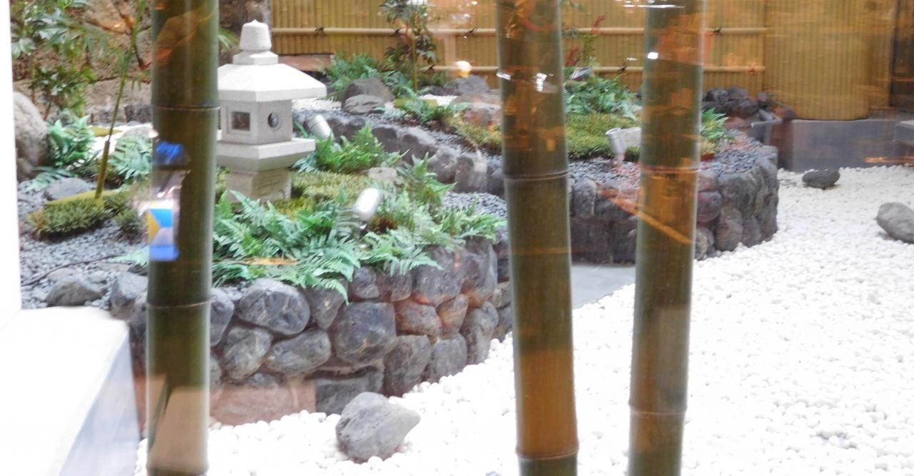 奥に見えるのが庭園と手前のマッサージコーナー