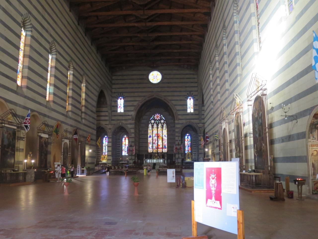 トスカーナは夏祭りで地区毎に旗が飾られることが多いですが、教会の中まで旗だらけです。