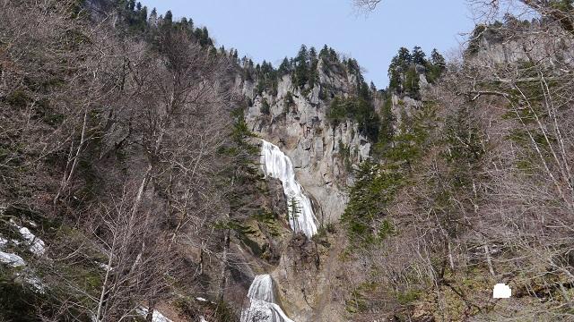 冬眠から覚めたクマに出会ったらどうしようかなどと恐る恐るまだ雪の残る滝を鑑賞した。不動の滝 自然・景勝地
