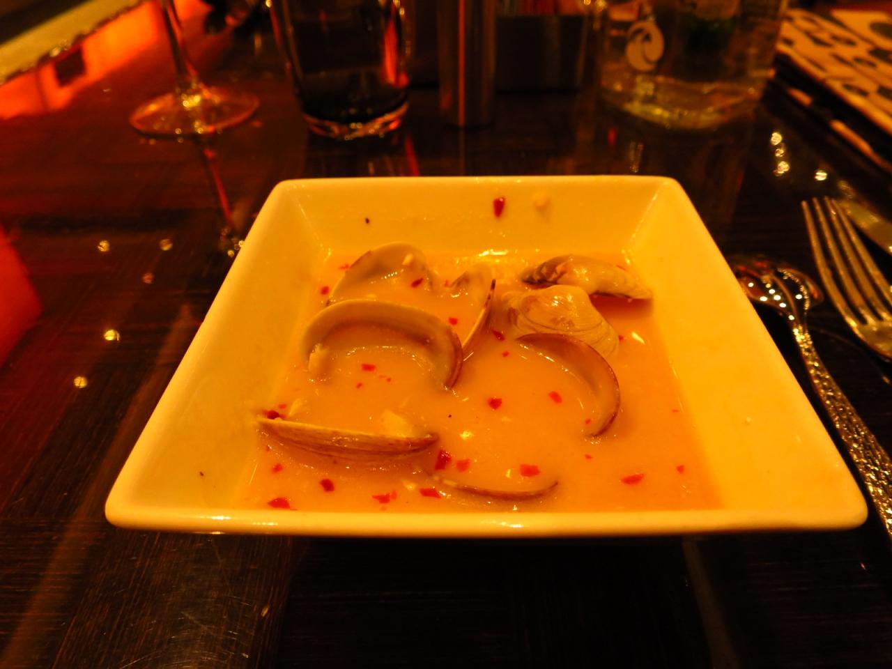 あさりを、白ワインでガーリックと唐辛子入り。めちゃくちゃ私好み。おかわり。 -