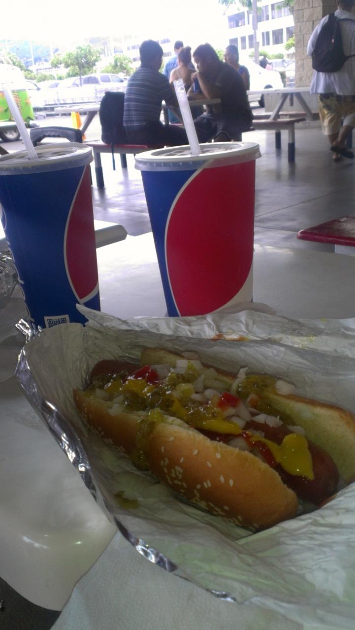 トノはホットドックの食べ方がダイナミックな事(玉ねぎマシーンで山ほど玉ねぎが出てきます)ホットドックの大きい事、そして何よりやすい事に感激。 -