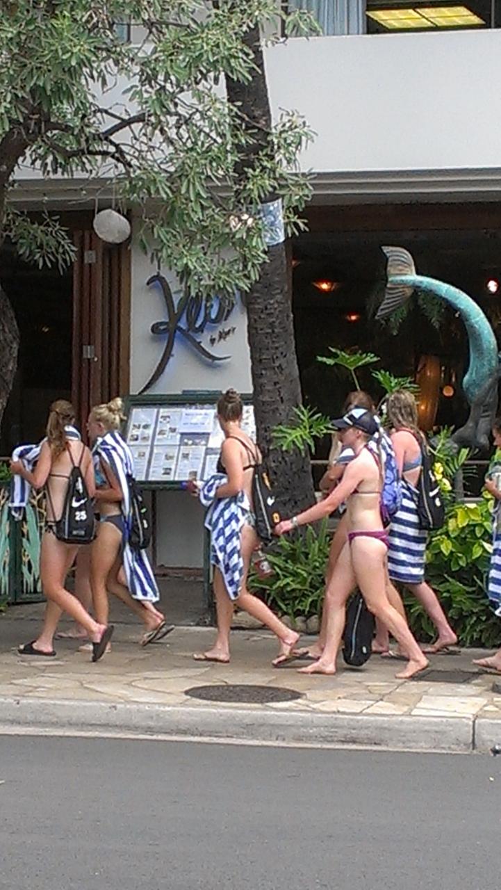 これこそワイキキって感じ。流石に日本人は上に何か羽織っている人が大半ですが、こんな風に開放的になれたらもっと楽しいかも。 -