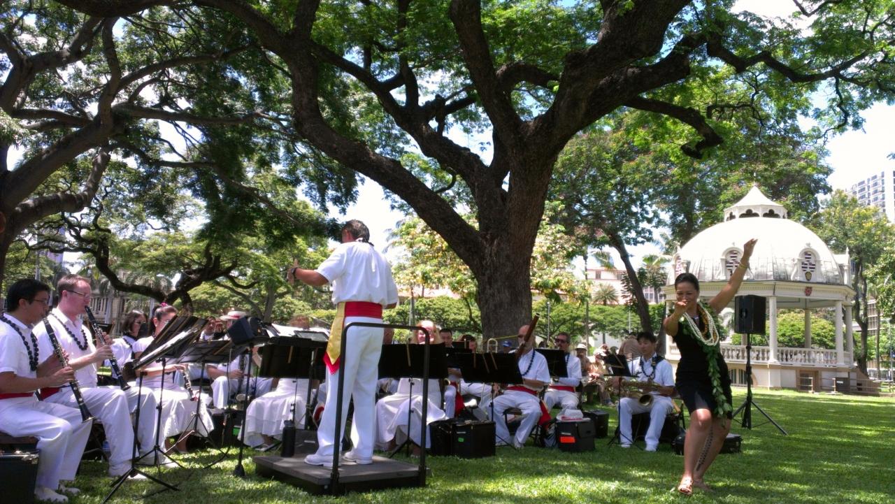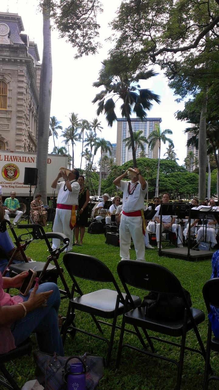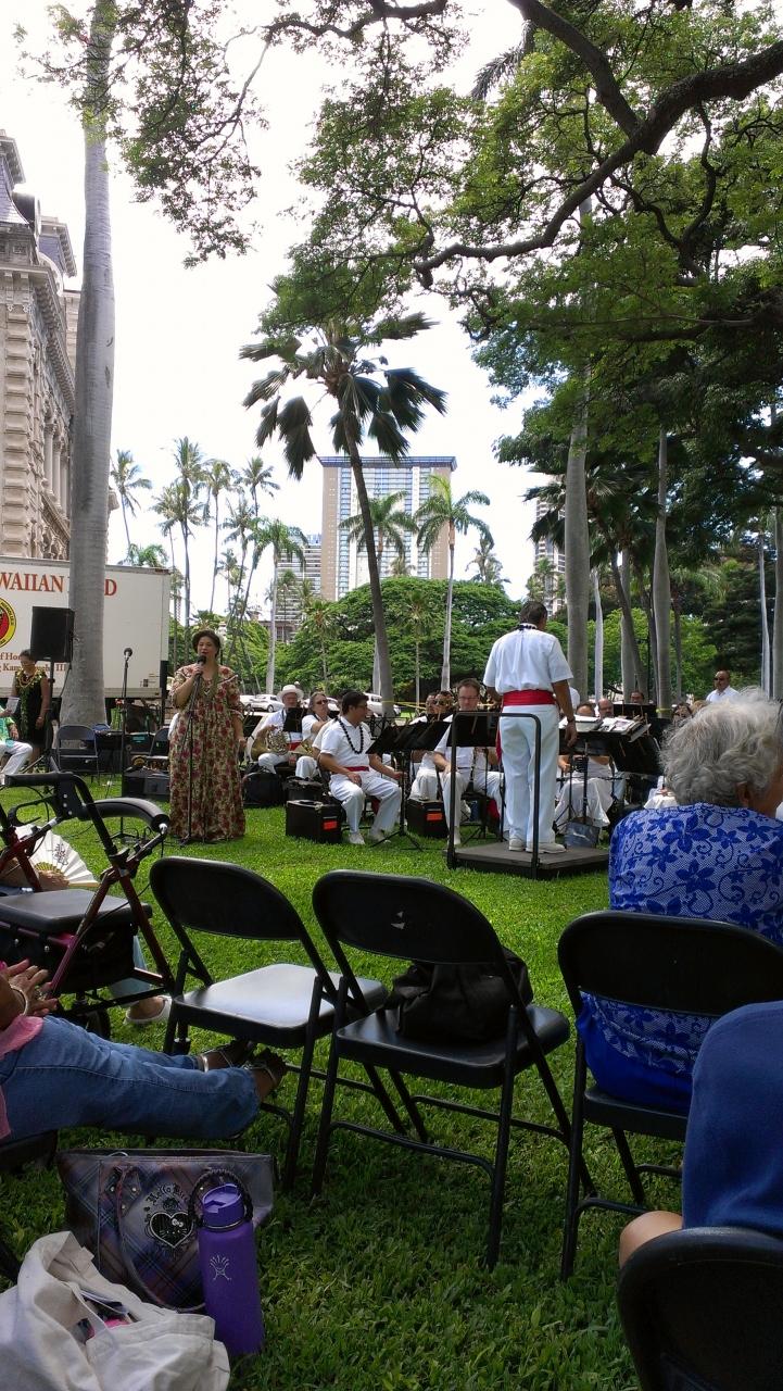 大柄の女性の素晴らしい声量に感激。柔らかで高らかでイオラニ宮殿の広い芝生の上で最高です。