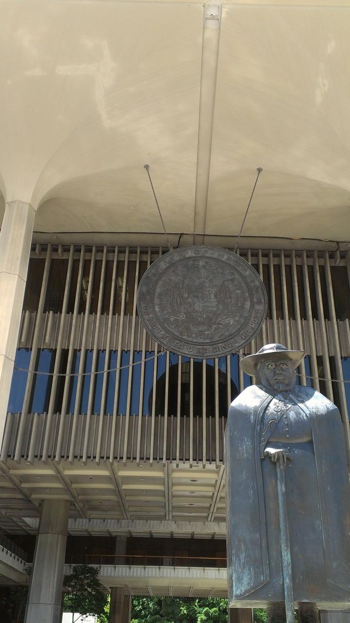 少し手前のバス停降り立ち、せっかくだからとハワイ州の庁舎に行ってみます。